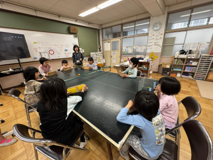 一時間目のななすぽの時間に卓球バレーをしました!