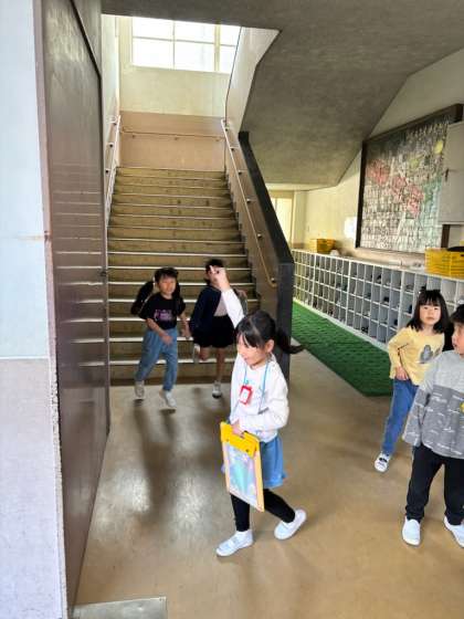 2年生が、1年生に学校を紹介して回る「学校たんけん」。毎年微笑ましい姿を見せてくれますが、今年もやってきました。