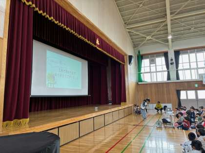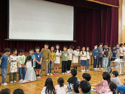 各クラスの代表や委員会の代表の発表からも、「自分たちが学校をより良くしていこう」という姿勢を感じます。すべてを「自分ごと」として感じ、考え、行動できたなら、本当に素敵なことです。その一端を感じることができた児童朝会でした。そして…今年度は「ふじパンマン」が登場したとの情報も…。ついに、児童会からマスコットキャラクターが登場!