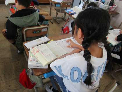 漢字辞典の3つの引き方を知り、実際にいろいろな漢字の読み方、意味、使い方について調べました。
