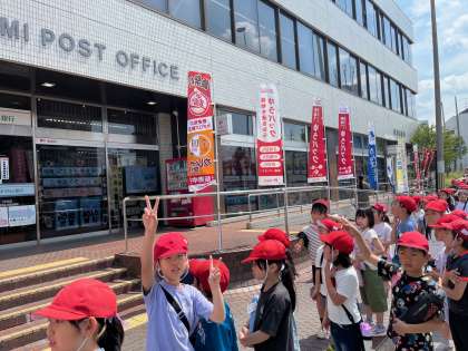 今回は、学校の西側を調べました。チェックポイントは、1.土地の様子、2.交通、3.公共施設です。見つけたことを友だちと話し合いながら歩くことができました。