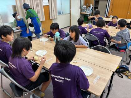 それはさておき、今月も藤森子ども広場を開催していただきました。こっそり見に行くタイミングに、なぜだか紫色が目に入ってくるのは少し触れずにおいておきますが、子どもたちがおいしそうに頬張る姿は、いつ見ても元気と笑顔をもらいます。