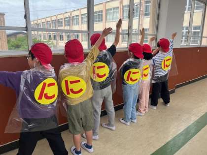 2年生は にっこにこレンジャーになって1年生に笑顔と元気を届けるために