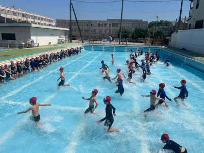 とってもいいお天気の中、楽しみにしていたみずあそびをしました。