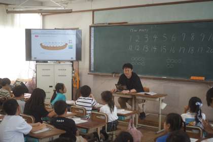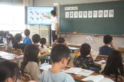 3年生の外国語はHow many〜?の表現を使って、数を尋ねたり数を伝えたりする学習をしています。どんどん声に出して、英語を話す子どもたちです。