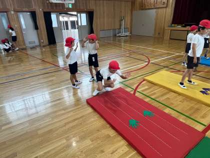 マット運動の学習では、新しい技やできない技ができるように、友だちとのつながりの中で練習を積み重ねる素敵な姿がたくさんあります。