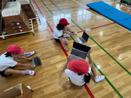 新しい技や難しい技へのチャレンジはドキドキします。でも、友だちと励まし合いながら、GIGA端末も活用して練習することで頑張ることができます。