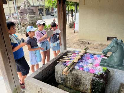 総合的な学習の時間では、「藤ノ森はかせになろう」という学習で、藤森神社について詳しく調べる学習をしています。