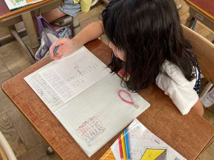 アンケートの結果を表やグラフを使って、分かりやすく整理する仕方を考える学習をしています。