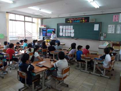 3年生は全校集会の後,算数,社会,外国語活動をしました。