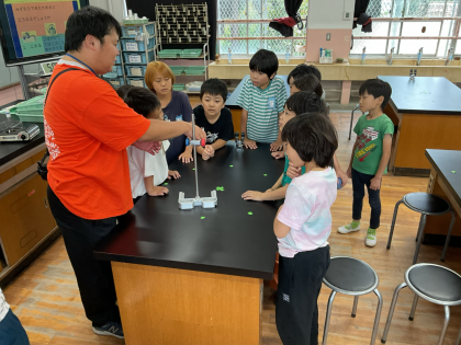 水をアルコールランプで熱してその様子を観察しました。みんな「どんな風に変わるんだろう?」という表情で真剣な眼差しで実験の様子を眺めていました。