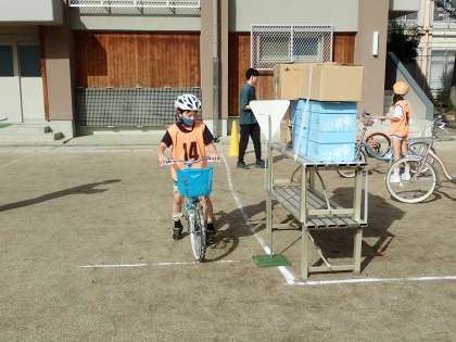 警察の方に自転車の乗り方について話ていただいた後、実際に自転車に乗りました。