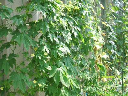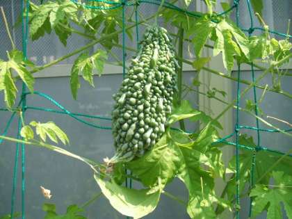 気温が高いほど,ツルレイシもよく育つのですね。ツルレイシの実もできてきました。