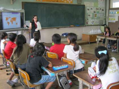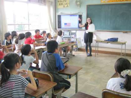 サラ先生は,クイズを交えながら自己紹介を楽しくしてくださいました。