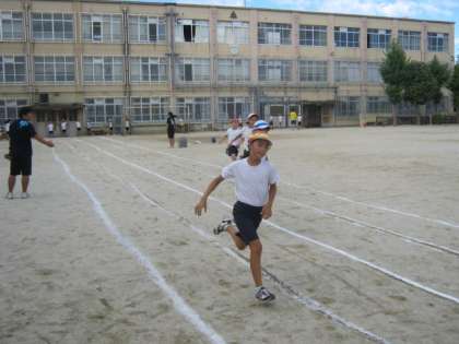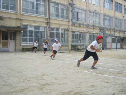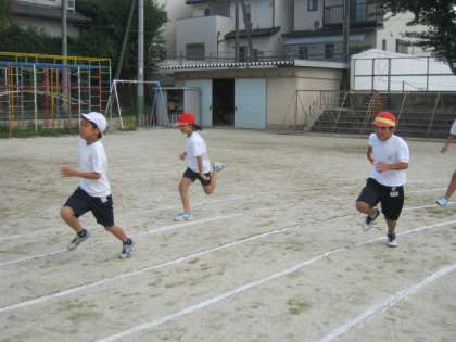 子どもたちはスタートと距離の感覚を感じながら走りました。