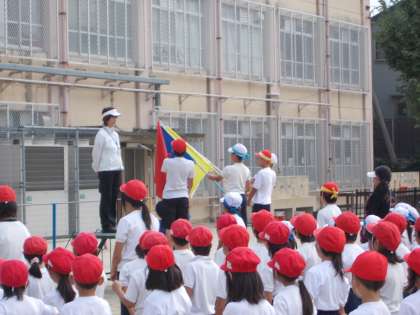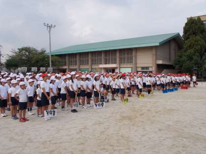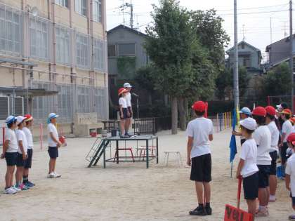 少し暑さの和らいだ日差しの中,全校体育を行いました。全体での練習は今日が最後になります。高学年,特に各色の団長を中心にビシッとした整列,きびきびした動きでいい緊張感を全校の子どもたちが共有することができました。