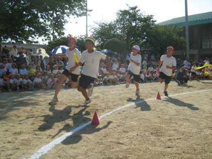 5・6年エントリー種目「4色リレー」は,さすがに迫力がちがいます。