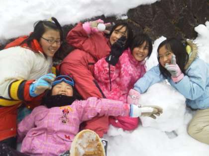 昼食後は雪遊びです。