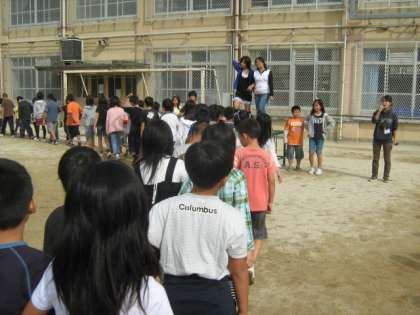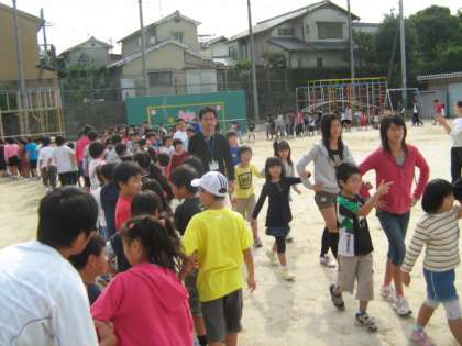 兄弟学級で円をつくり,音楽に合わせてダンスを楽しみました。
