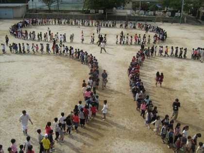 手と手を取り合い,みんなのにこにこ笑顔があふれました。