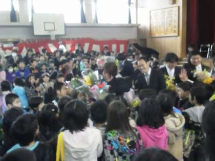 最後に,全員で花道を作って,離任する先生方を送りました。