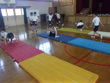 体育の学習でマット運動が始まりました。