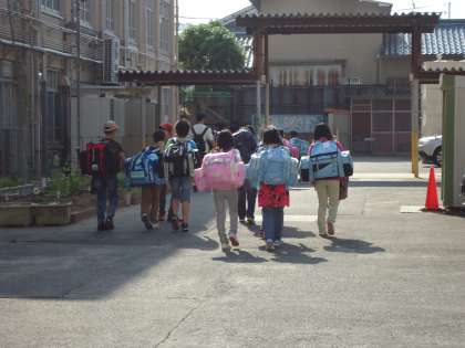朝7時半に集合。今日から福井県の奥越青少年自然の家にて4泊5日の修学自然教室です。