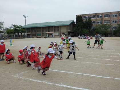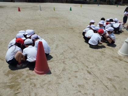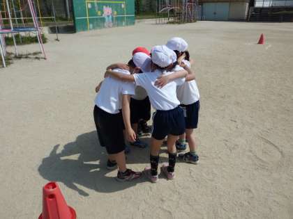 最近では,チームで円陣を組んだり,バトンの受け渡しを工夫したり,作戦会議をしたりと,勝つために子どもたちで工夫する姿も見られるようになってきました。