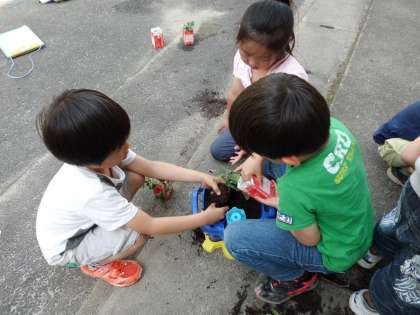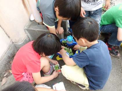 「葉っぱの数が増えている!」「葉っぱがふさふさしている!」「この白いとげとげ,なんだろう?」と楽しそうに観察していました。
