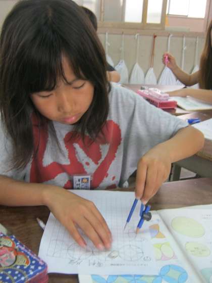 なかなかうまくコンパスを使えず,悪戦苦闘!!