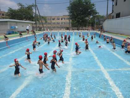 お天気にも恵まれ,2年生は,水に慣れるため,低い水位のプールで思いっきり