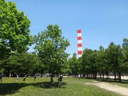 クリーンセンターには大きな煙突があります。