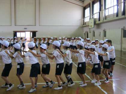 運動会で,全校ダンスを楽しんだ2年生。