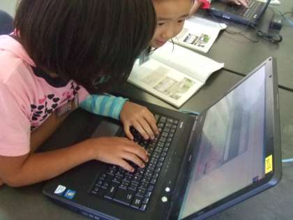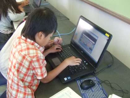 子どもたちは,覚えたローマ字を思い出そうと頭をひねりながら,