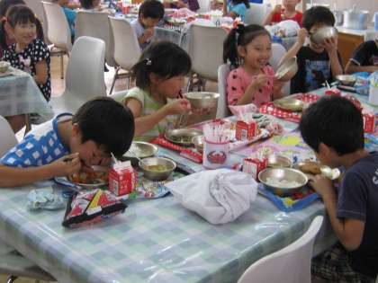 今週は,1クラスずつ,食に関する学習を行っています。 1年生になって,2回目のランチルームでの給食。 とてもうれしくて,いつもよりたくさん食べていました。