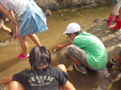 そして・・・川に入って,それぞれのテーマごとに調査を開始。