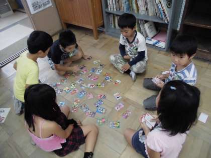 教室では,かるたをしたり,鍵盤ハーモニカを演奏したり,自由帳に絵を描いたりしています。