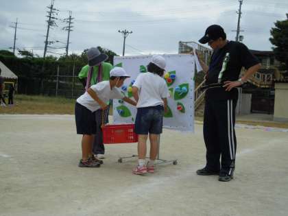 紅組と白組に分かれ,他校の友達と玉入れや綱引きをしたり,