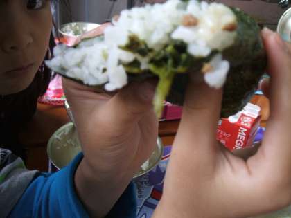納豆の苦手な子もいましたが,のり巻きにして食べるので,少し食べやすくなりがんばって食べてくれました。