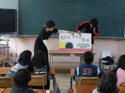 1年生が好きそうなお話を選んで,わかりやすく読んでくれました。
