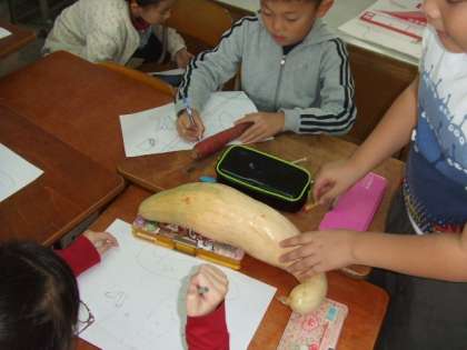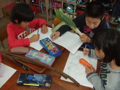 野菜の感触を確かめながら,ゆっくりじっくり下絵作りを
