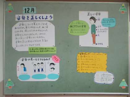もうすぐ本格的な冬がきますが,寒いからといって背中が丸くなっている人はいませんか?またポケットに手を突っ込んで歩いている人をちらほら見かけますが,このような姿勢ではけがも起こりやすいし,身長も伸びにくくなってしまいます。