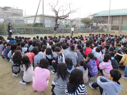 5時間目に避難訓練がありました。今回は,地震がおきて給食室より火災が発生した時にどのように避難すればよいかについて学び,訓練に臨みました。