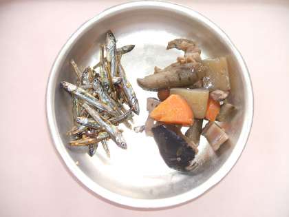 1月は,新年を祝う気持ちや願いが込められているお正月料理を多く取り入れています。16日の「紅白なます」,22日の「たたきごぼう」,そして今日の「煮しめ・ごまめ』です。