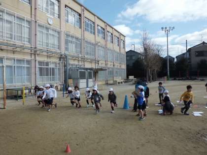 1年生の体育では、持久走大会に向けての練習が行われています。