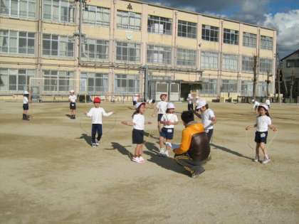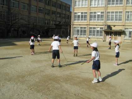 寒さに負けずに,なわとびをしたり,かけっこをしたりと元気に体育をしています。