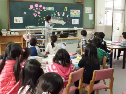 年度初めに,図書支援員の吉井先生の図書指導がありました。
