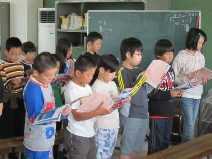 音楽で歌を歌うときの姿勢を教えていただきました。