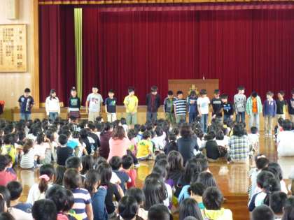 今月の朝会では,目指す子ども像の「しっかり聞きしっかり話せる子」について伝えました。朝会のような全校集会での子どもたちの話を聞く姿勢・態度は,とても静かに集中して話を聞くことができています。「聞く力」というのは,「確かな学力」においても「豊かな心」においても,最も大切で基本的な力であると認識しています。