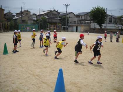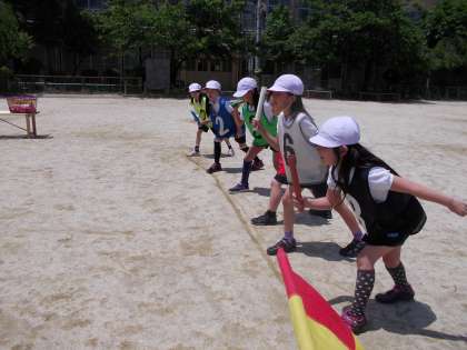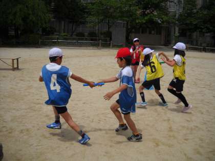 バトンの渡し方の練習をしたり、チームの仲間を応援したりと協力し合って頑張っています。リレー大会に向けて、もっともっと練習していこうと思います。